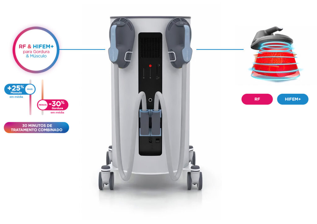 2. Aumento da massa muscular: O campo eletromagnético induz contrações musculares supramáximas, mais intensas do que as que você conseguiria em um treino físico comum. Isso resulta em um aumento da massa muscular de até 25%, dependendo da área tratada.